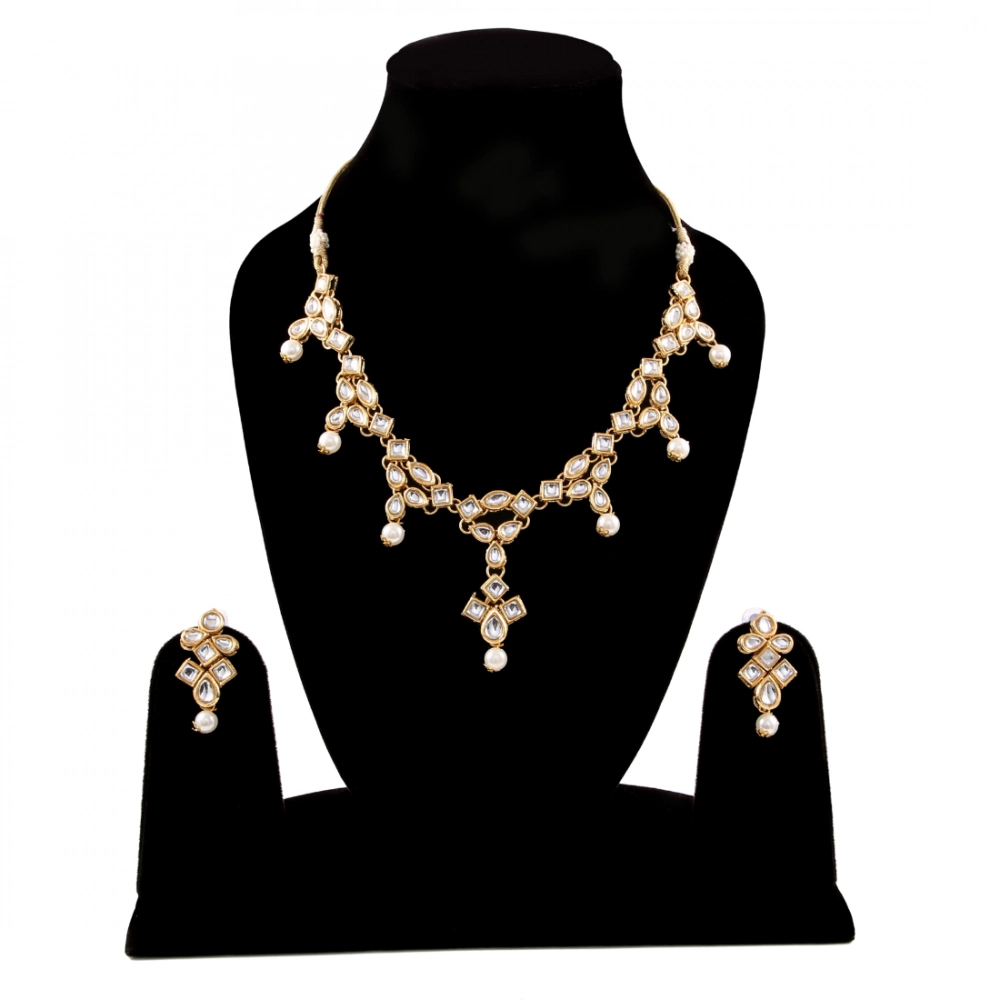 Designer Pearl Gold Plated Kundan Necklace Set,
