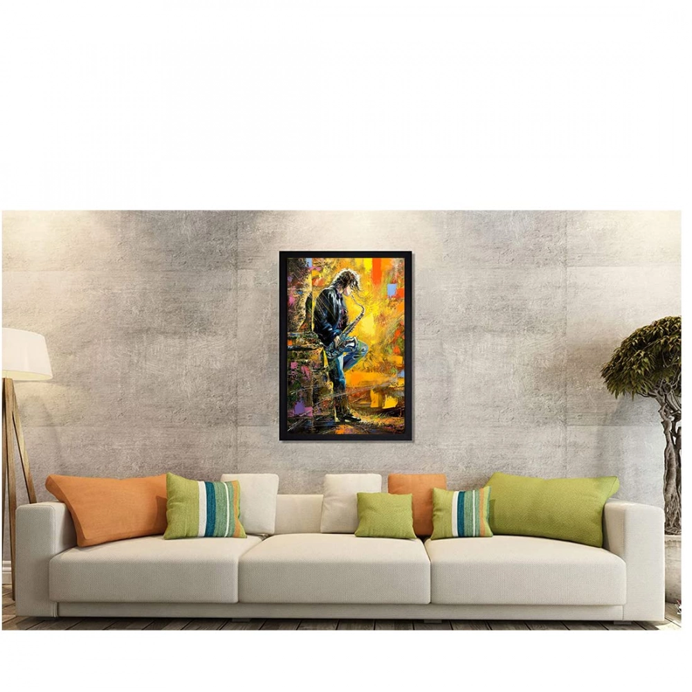 Generic Boy Playing Saxophone Modern Art Painting with Synthetic Photo Frame (Multicolor)