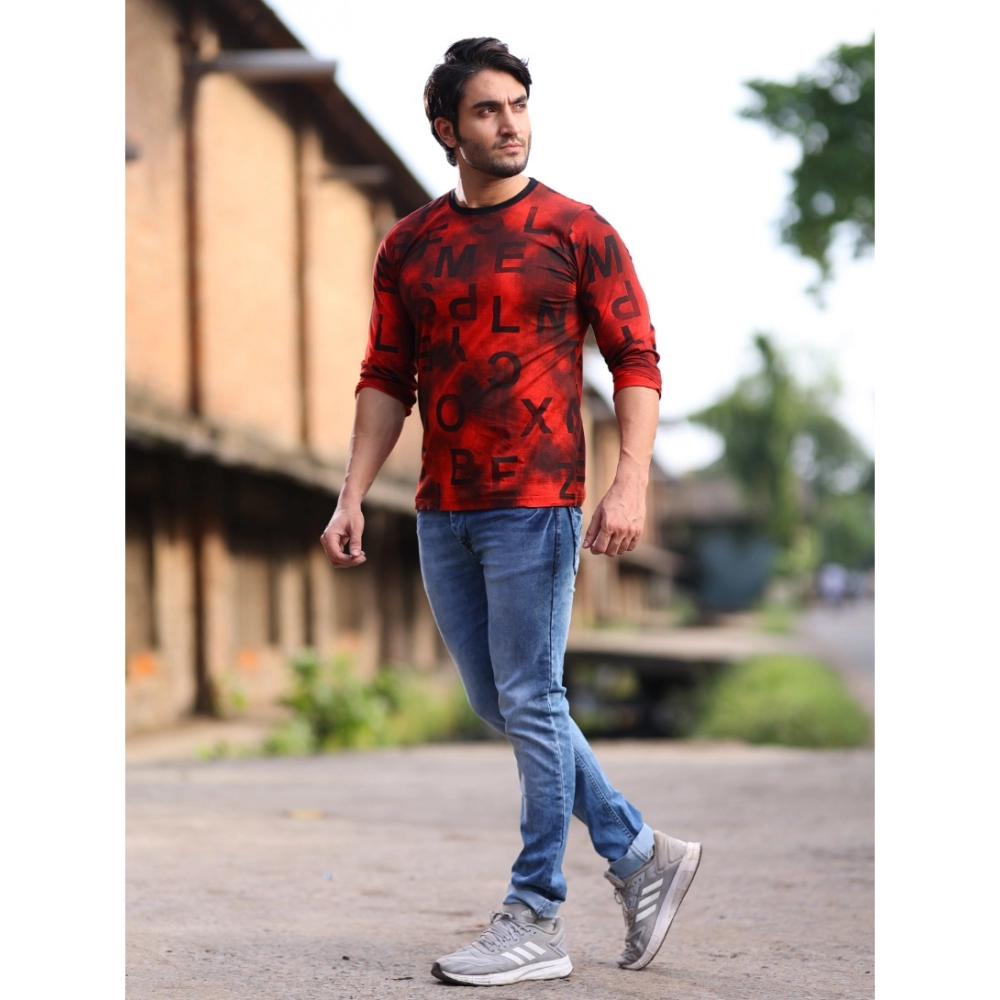 Generic Men’s Casual Cotton Printed Round Neck Full Sleeve T-Shirt (Red)