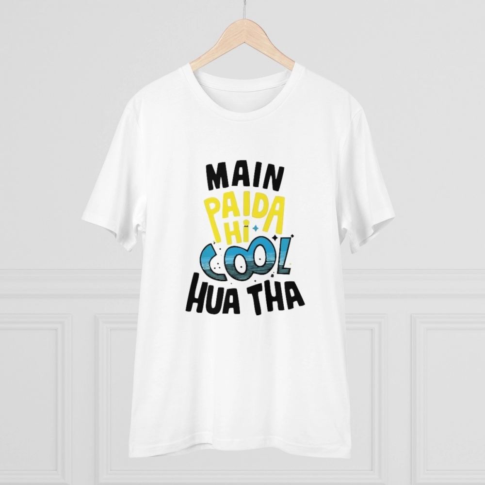 Men’s PC Cotton Me Paida Hi Cool Huaa Tha Printed T Shirt (Color: White, Thread Count: 180GSM)