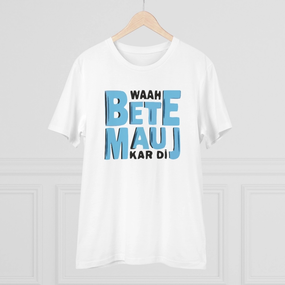 Men’s PC Cotton Mojj Kardi Printed T Shirt (Color: White, Thread Count: 180GSM)