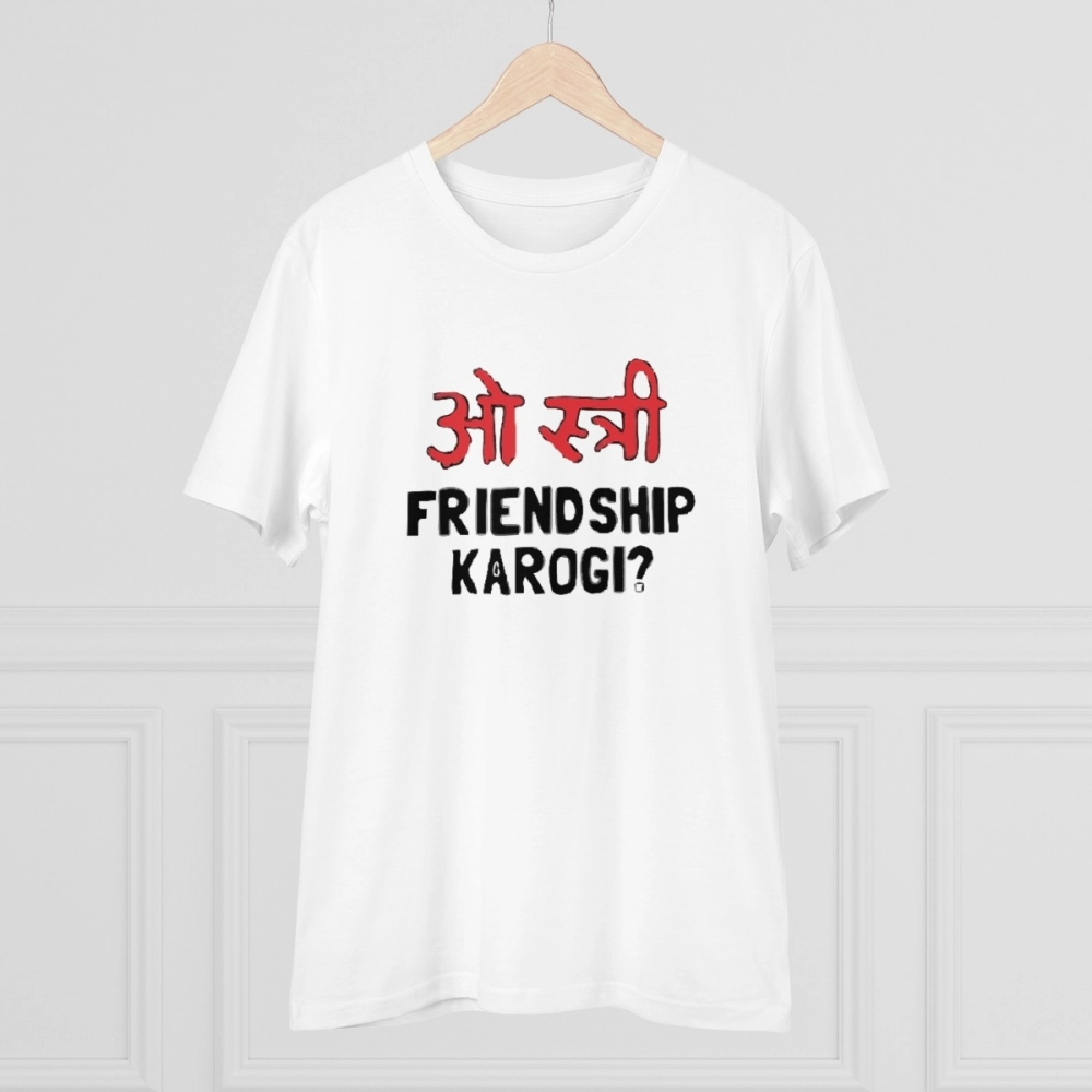 Generic Men’s PC Cotton Oo Shtree Friendship Karogi Kya Printed T Shirt (Color: White, Thread Count: 180GSM)