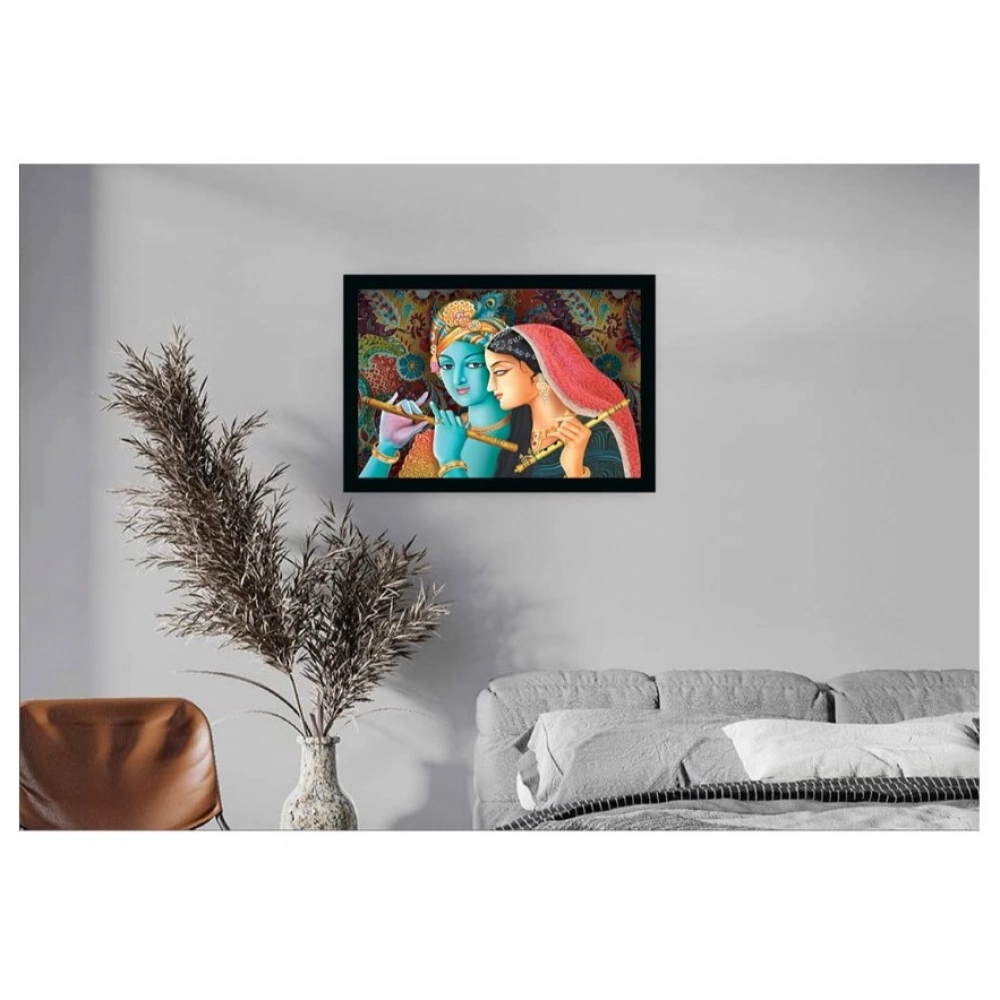 Generic Radha Krishna Painting with Synthetic Photo Frame (Multicolor)