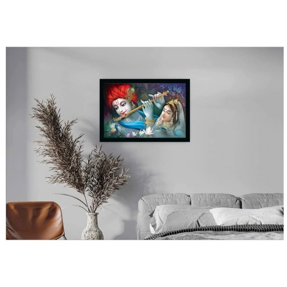 Generic Radha Krishna Painting with Synthetic Photo Frame (Multicolor)