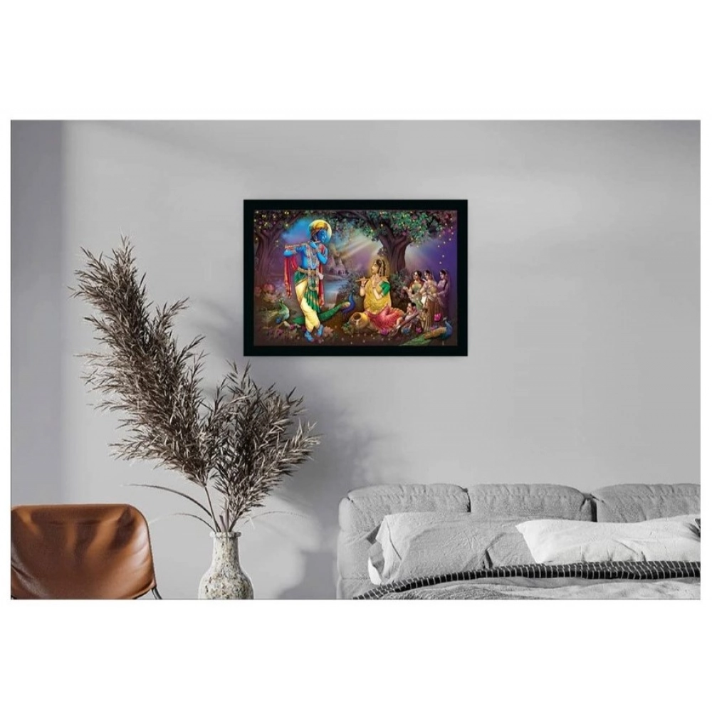 Generic Radha Krishna Painting with Synthetic Photo Frame (Multicolor)