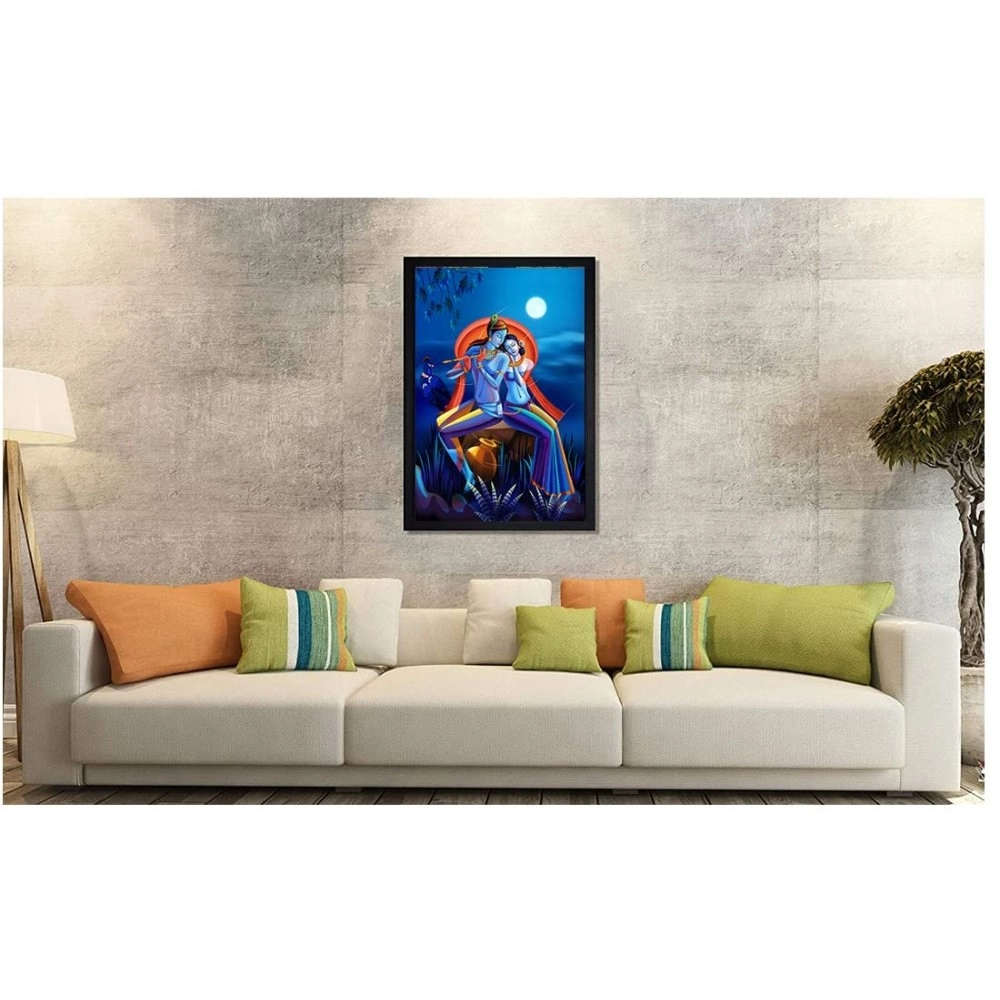 Generic Radha Krishna Painting with Synthetic Photo Frame (Multicolor)