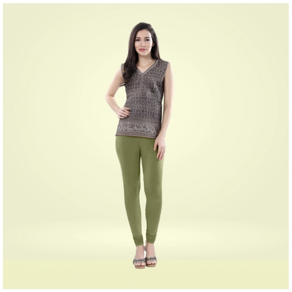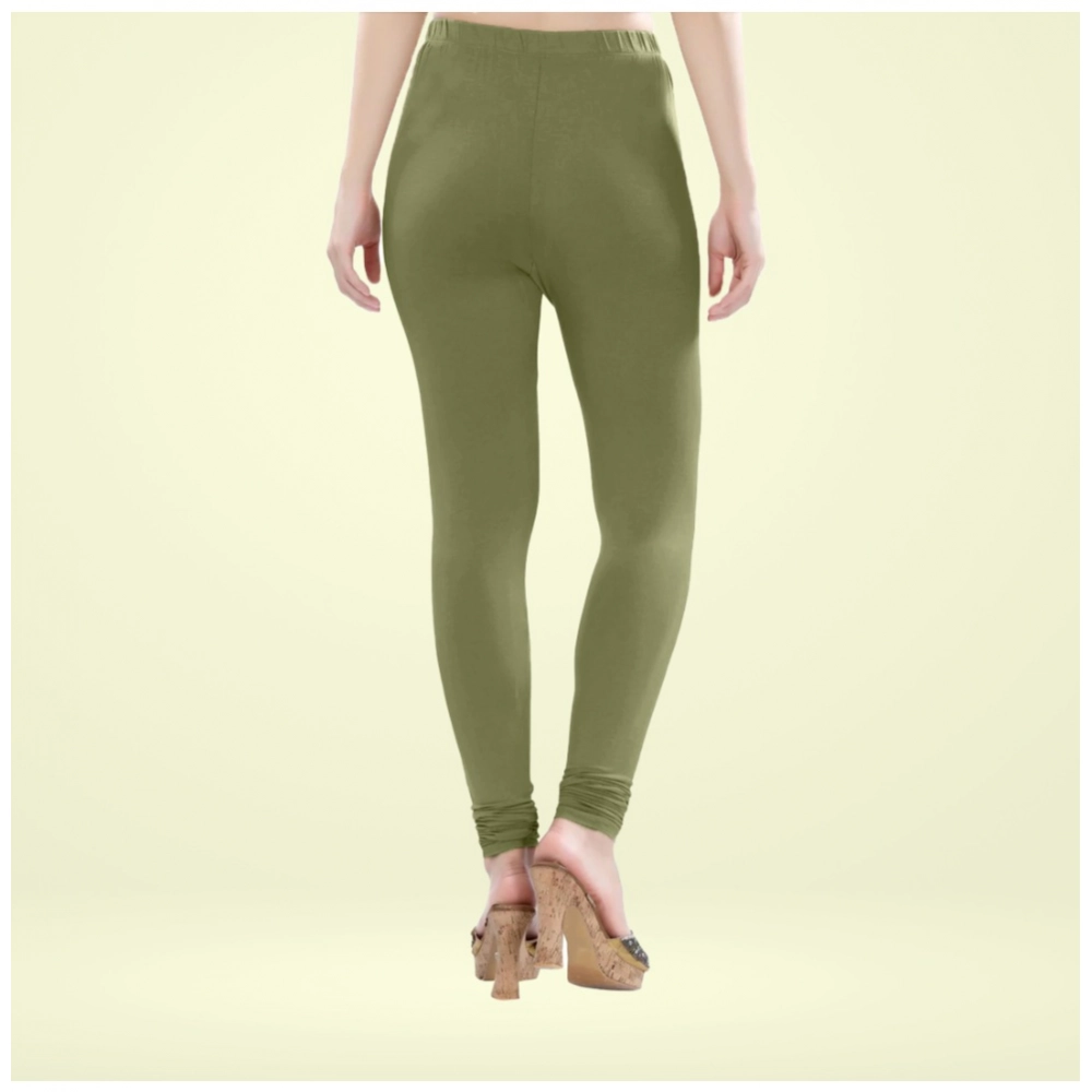Generic Women’s Cotton Blended Solid Churidar leggings (Olive Green)
