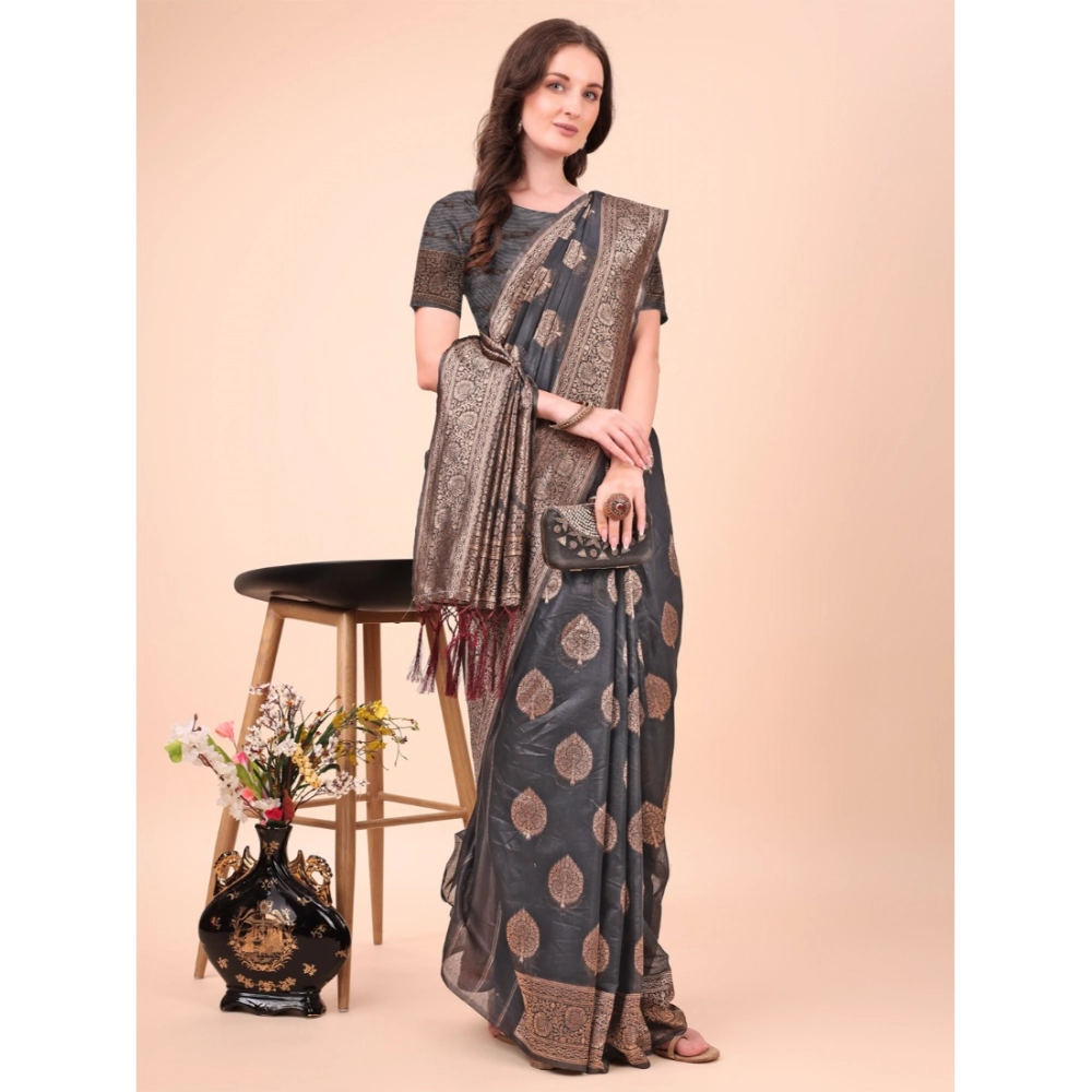 Generic Women’s Linen Cotton Printed Saree With Unstitched Blouse 5.5Mtr (Light Green)