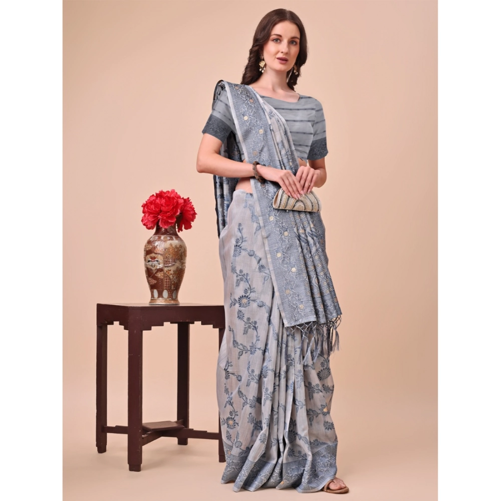 Generic Women’s Cotton Printed Saree With Unstitched Blouse 5.5Mtr (Grey)