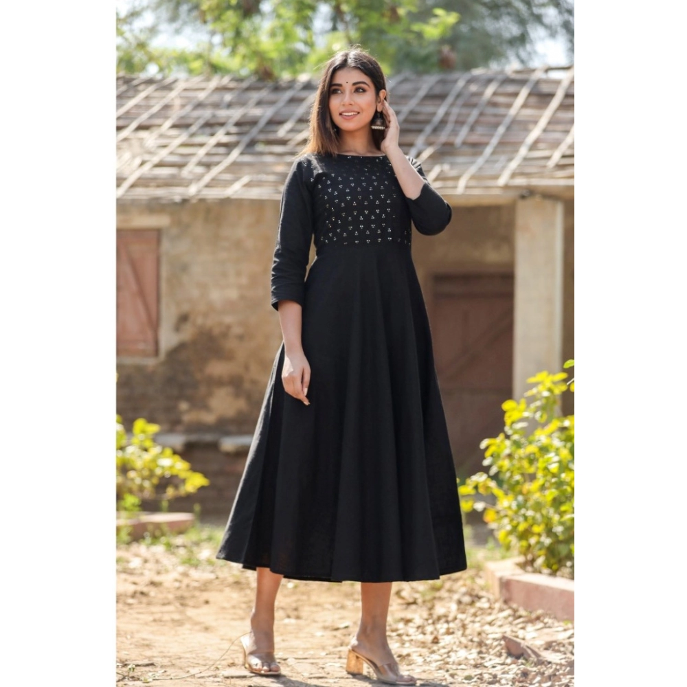 Be the first to review “Generic Women’s Cotton Solid 3/4 Sleeve Round Neck Kurti (Black)”