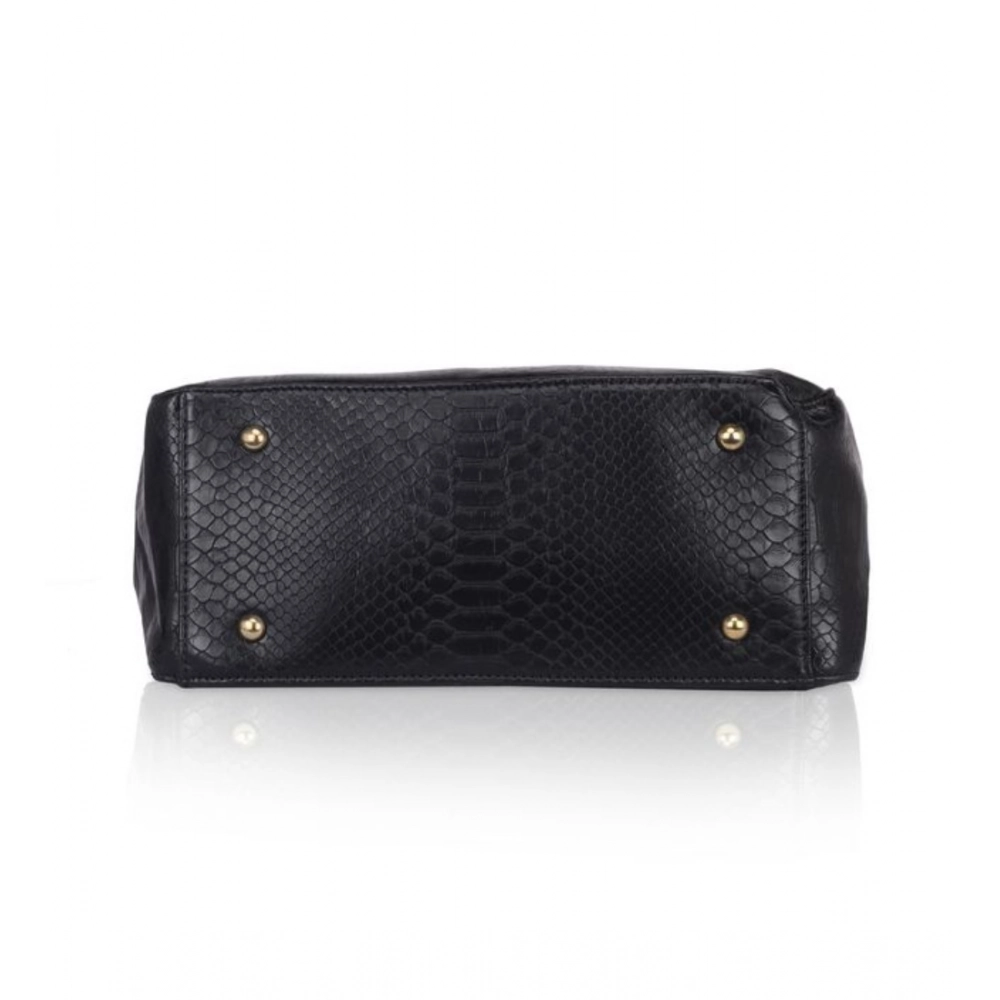 Generic Women’s Faux Leather Textured Tote Bag (Black)