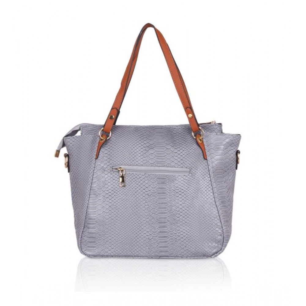 Generic Women’s Faux Leather Textured Tote Bag (Grey)