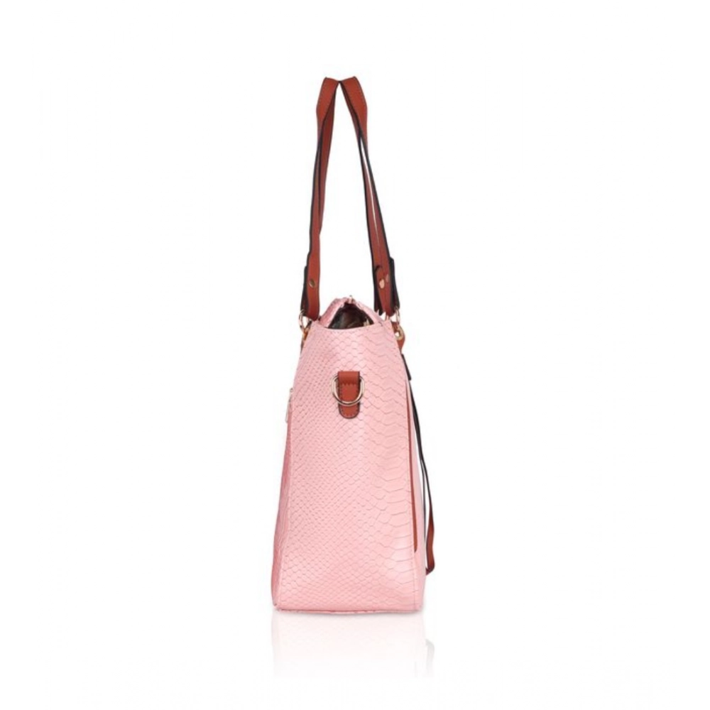 Generic Women’s Faux Leather Textured Tote Bag (Pink)