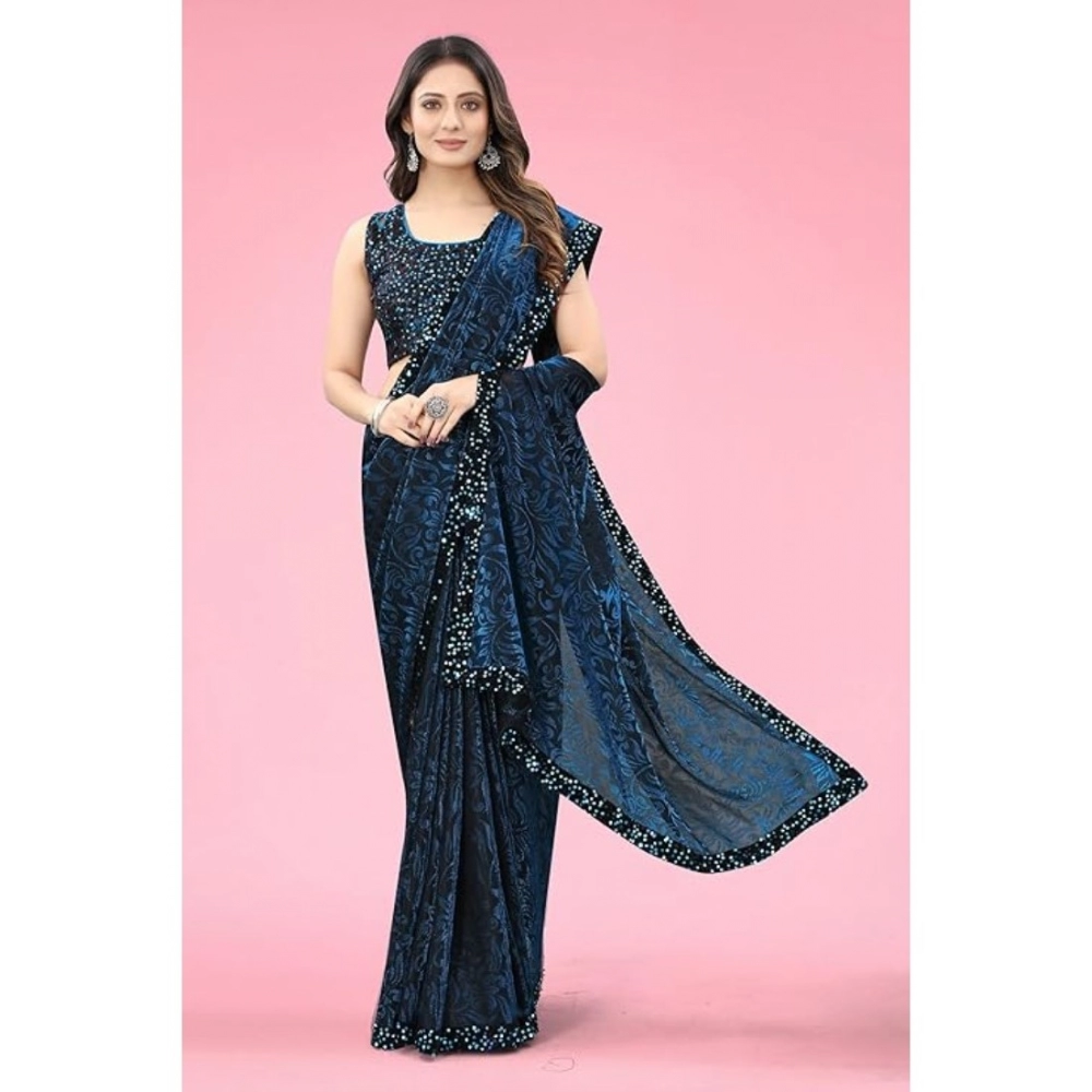Women’s Lycra Floral Saree With Unstitched Blouse