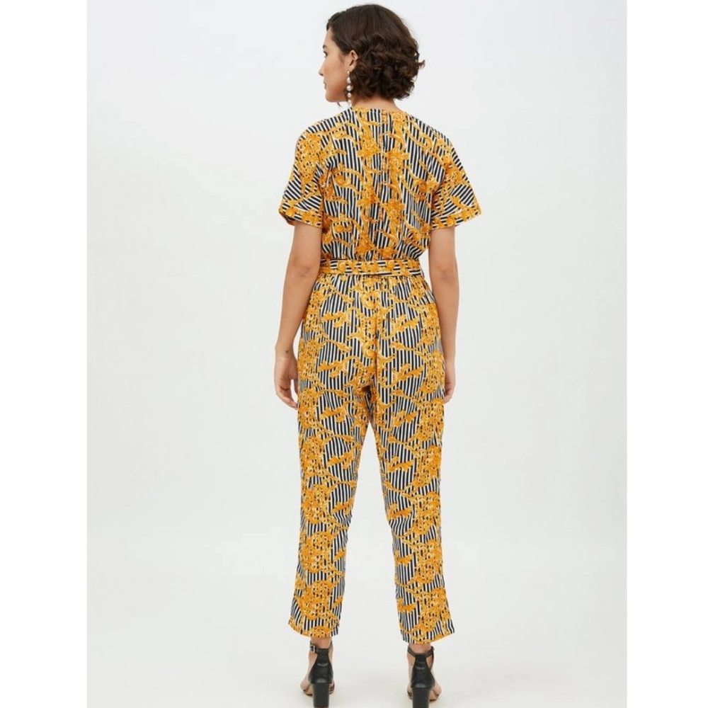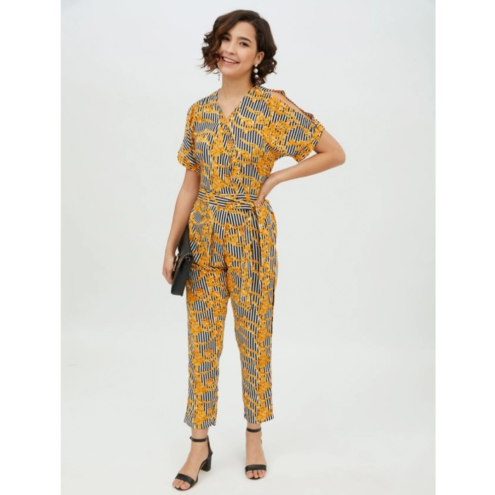 Women’s Polyester Printed Half Sleeve Long Jumpsuit